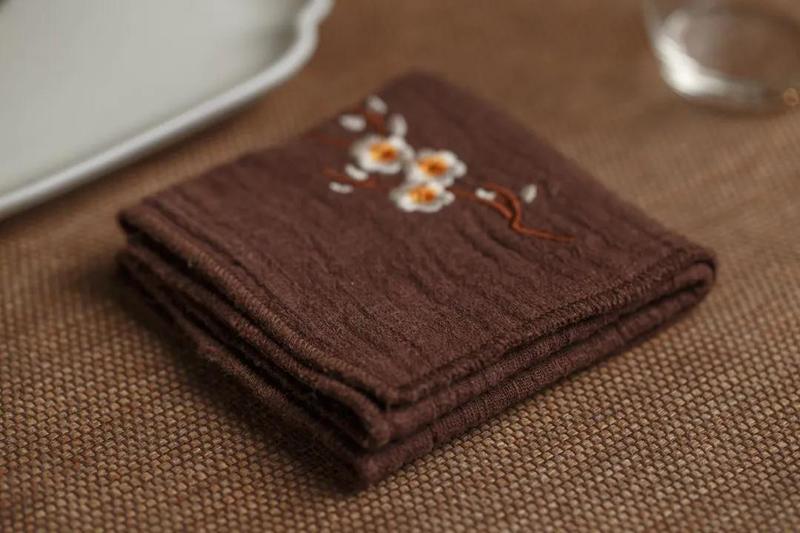 茶巾是用来擦拭茶具外部水渍的小方巾,因为洒在外面的茶水不会太多,不会把茶巾完全打湿,所以一般大家都会选择搁在一边直接晾着。
