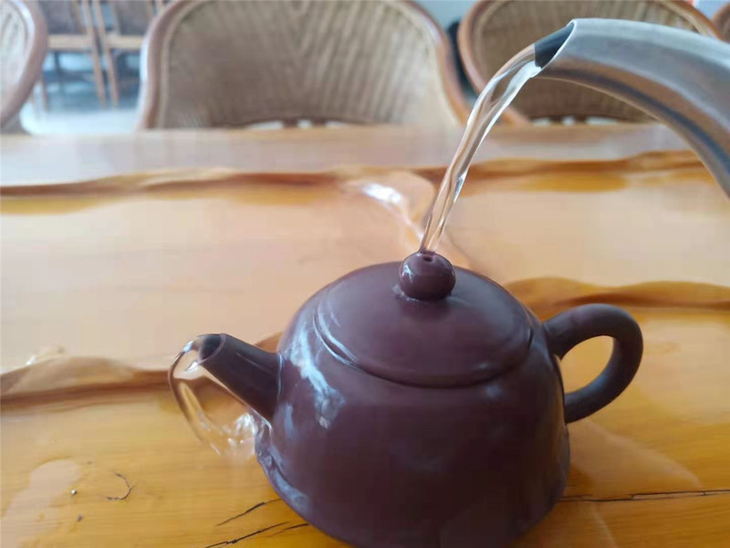 第二步:把洗干净的壶用开水里外浇灌让壶充份吸水。给壶沐浴(朱泥、大红袍的壶则用温水淋浇;秋冬更要注意温差,防止冷热交替,致壶惊裂)