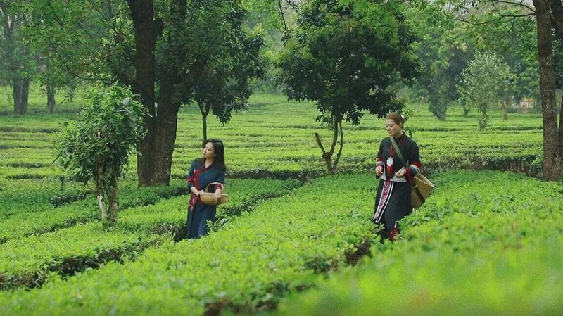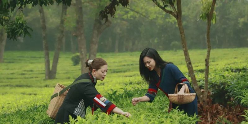 茶园里,一边帮着姜標阿姐采茶,一边听她说着今年的茶叶长势有多好。看着她手里绿油油的鲜茶叶,我们知道这个春季又是当地茶农的一个丰收季。
