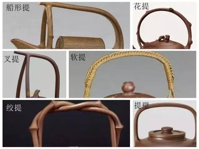 提梁壶类型,古已有之,原始陶器及青铜器造型中皆有。紫砂壶中的提梁又有两种形式之分,一为硬提梁,一为软提梁。
