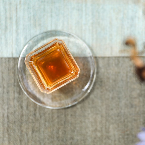 采用玻璃品茗杯、玻璃杯垫,清新舒爽,可以凸显出茶汤颜色,时光在汤色里面的沉淀。方形品茗杯,圆形杯垫,寓意天圆地方。