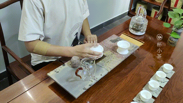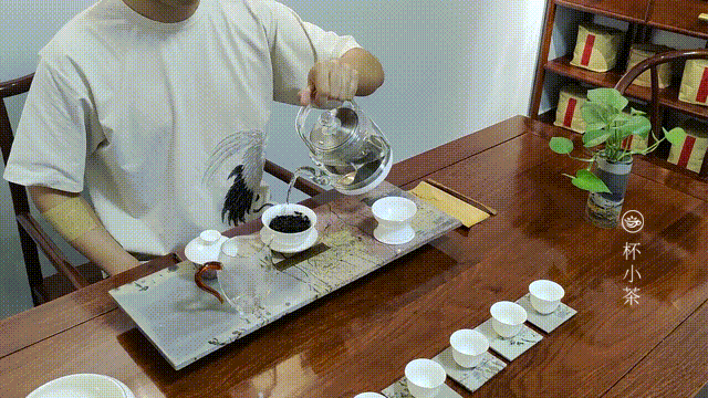 在泡茶伊始,记得先温杯烫壶,茶泡好并倒入茶杯后,再将每一杯茶放于客人的面前,这样更显周到。