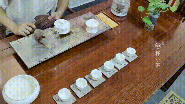 未使用时,茶杯可以集中摆在茶桌的正前方位置,以一字排开的方式,或以错落有致的方式。