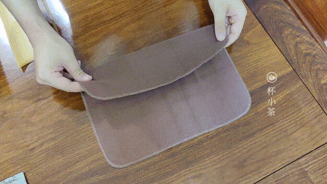 摆放时,茶巾可以放在泡茶者的正前方,或者位置稍稍偏右,方便右手泡茶者使用,同时茶巾的敞口最好不要朝外。