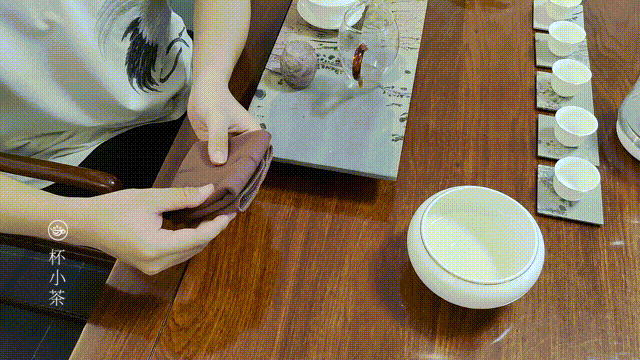 茶巾主要用来擦拭盖碗底部、公道杯底部或茶杯底部淌着的水,或是茶桌上的水渍。