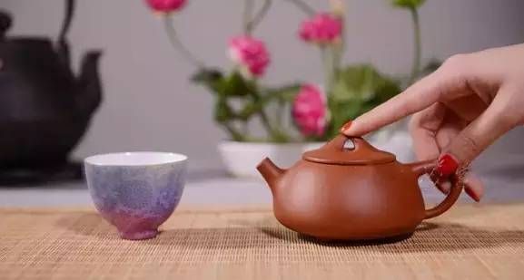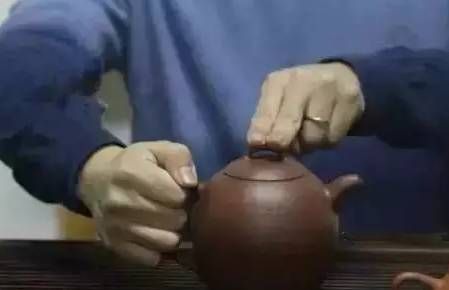 大拇指放在壶盖和壶钮上皆可,但是非“定水”时,不要堵住气孔;如果放在壶盖上,要小心被烫到。