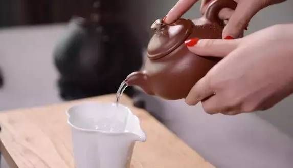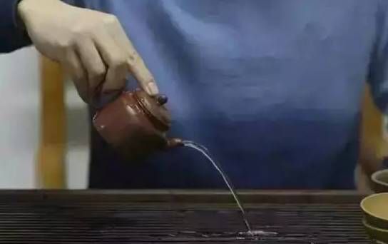 这个时候需要用两只手泡茶,右手拿稳壶,左手护好盖。