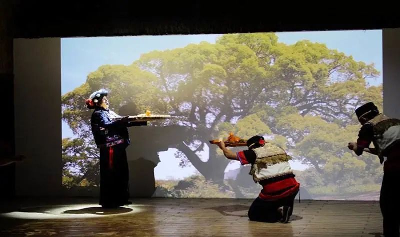 而另外一部被称为哈尼族旷世奇书的《窝果策尼果》,摩匹在茶香四溢的环境下吟唱传递此书。开篇里摩匹唱到:“……茶壶里冒出大股热气,象雾露绕着山岗……”