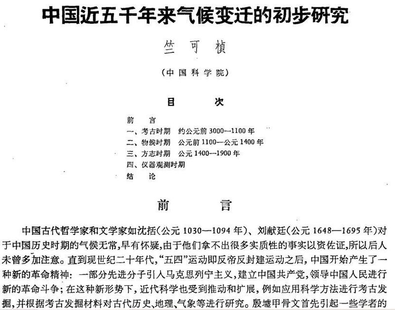 ▲竺可桢《中国近五千年来气候变迁的初步研究》。(图片来源:《考古学报》1972年第1期)