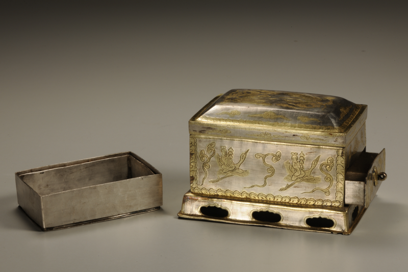 ▲唐鎏金飞天仙鹤纹银茶罗子。(图片来源:法门寺博物馆官网)