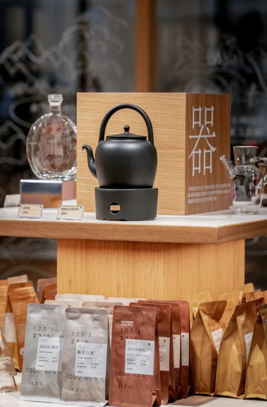 在tea'stone,人与茶、人与人之间的距离都不会遥远,在观看完情景化冲泡后,立马就能在另一侧的零售区找到这108种来自全国18个核心产区的纯茶。