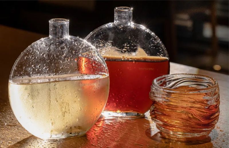 用源自宋代的高足盏呈现霸气馥郁的“花王牡丹”,用原创玻璃器“水经注竹节杯”呈现鲜爽翠嫩的绿茶,用独具现代与异域情调的“月亮瓶山河杯”呈现洋酒范儿的冰茶......