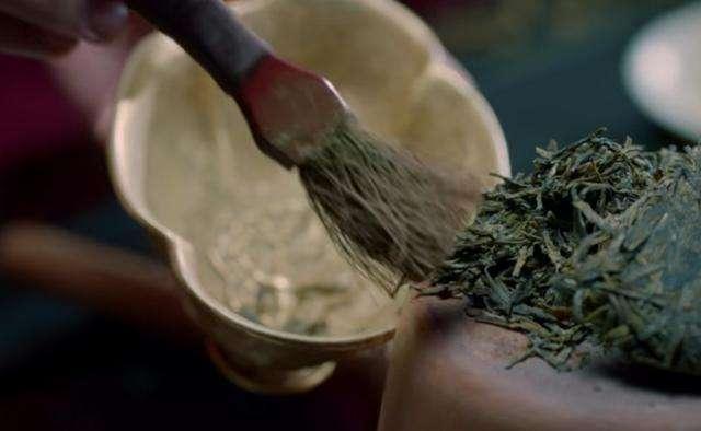 茶百戏,比的是沏茶的手法,这一步尤为关键,看官能从茶倒入碗中的汤花瞧出茶的好坏、主人的茶道一应信息。