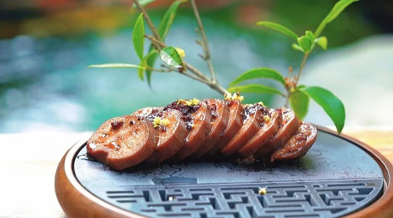 明万历年间的“太和蘸鸡”,清代的“龙井虾仁”“火熏猪肚”“松仁小肚”“熏猪肝”,以及清末民初的“广东熏鸡”等等,都是以茶为调味料的菜肴。