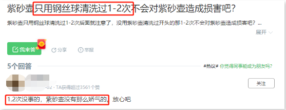 “紫砂壶只用钢丝球清洗过1-2次,不会对紫砂壶造成损害吧?”