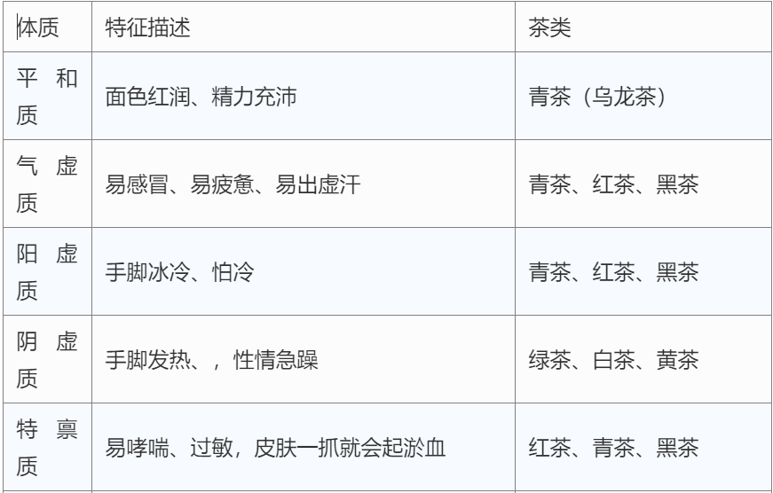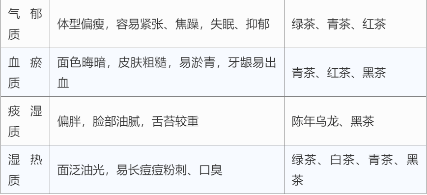 9种体质与六大茶类匹配表