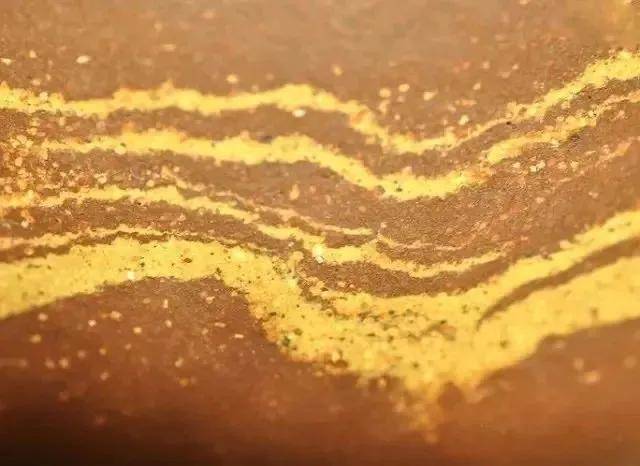 是将两种或两种以上不同色的紫砂泥,通过揉合或分层按压和在一起形成的图案效果。