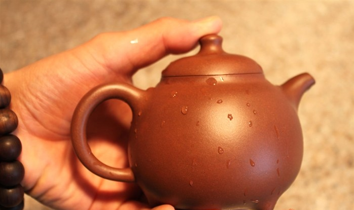 2、切忌沾到油污。紫砂壶最忌油污,沾上后必须马上清洗,否则土胎吸收不到茶水,全留下油痕。