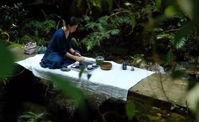 茶席是一个无限小的空间,但可以随着环境不断变化,相当于包含无限大的自然。户外喝茶讲究的是自然的味道,茶席在户外的摆设中需要应景,同时也要讲究和谐,不要破坏了自然的景色,抢夺了自然的味道,更不可随地乱丢废弃物。