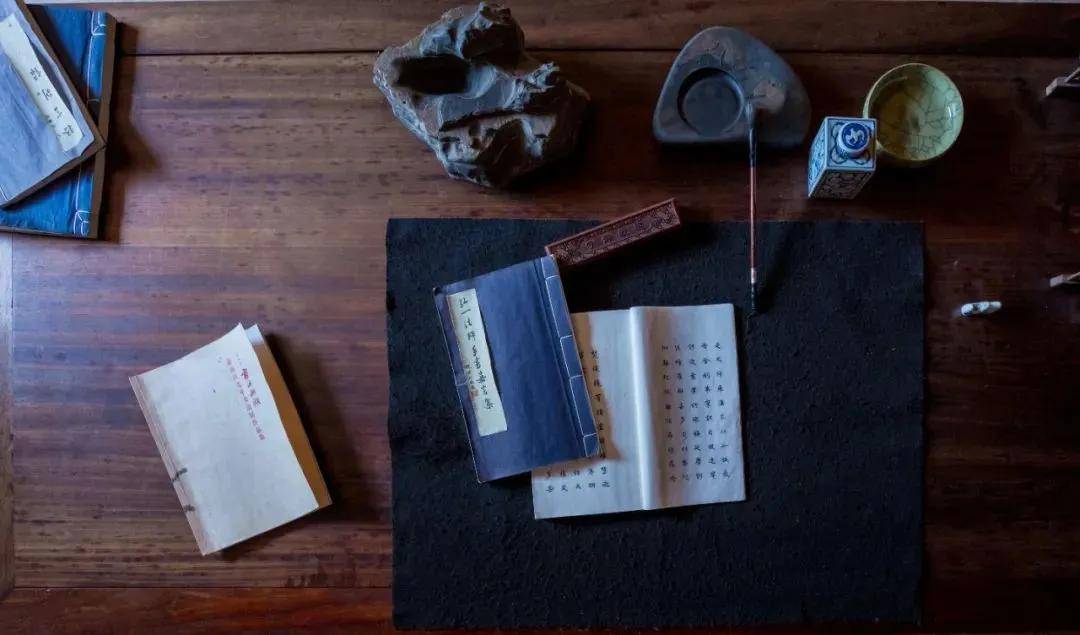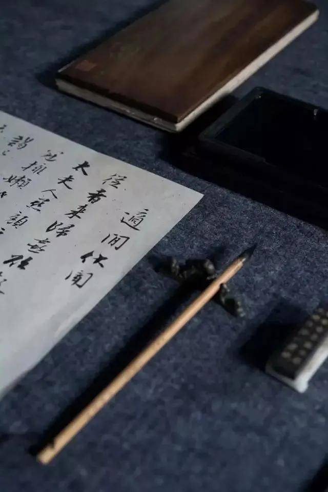 一墨、一砚、一纸、一笔,静心写字,将墨条和清水在砚台中耐心研磨,由淡变深,由深变浓。