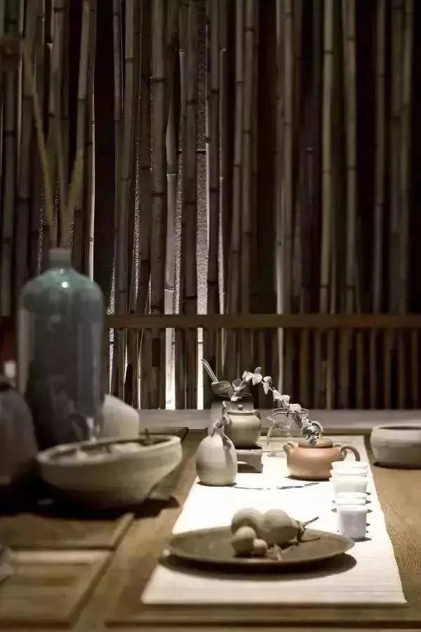 茶空间的打造不仅是一种意境的表达,更是主人品格的体现。远离尘世喧嚣,细品人生百态,偷得浮生半日闲。利用简素的物体和源自自然的材料营造的空间,无一处不体现“静、净、镜”。