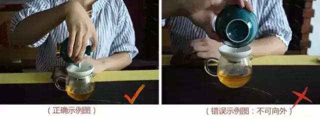 盖碗烫手和手持姿势有很大关系。正确的步骤如下: