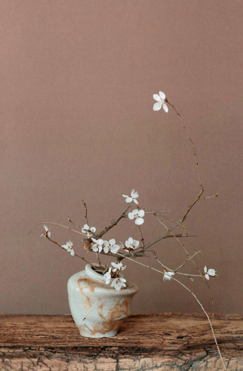 无论是正式的花道作品,还是用于茶道的插花作品,都应当让人们感受到花儿随着时间的流逝生命变迁的过程。但是,在正式的花道作品中,因为要在有限的条件下更长时间地保持花姿,通常会选用寿命比较长的花材,或是类似清晨开花,傍晚凋谢的木槿那样,生命力比较短的花卉。