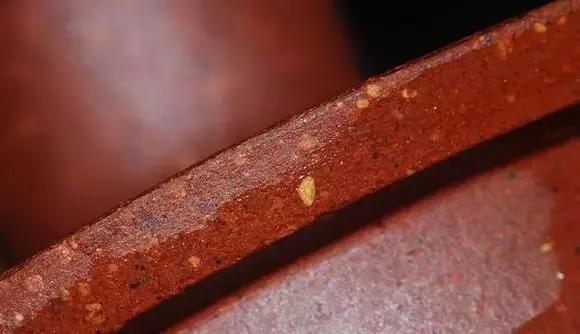 5、看砂粒:真正的原矿泥料砂粒分布不均匀,壶面做工再细腻也难免砂料浮出表体,可以看壶盖边缘部分,是辨认砂粒原色的最佳部位。