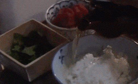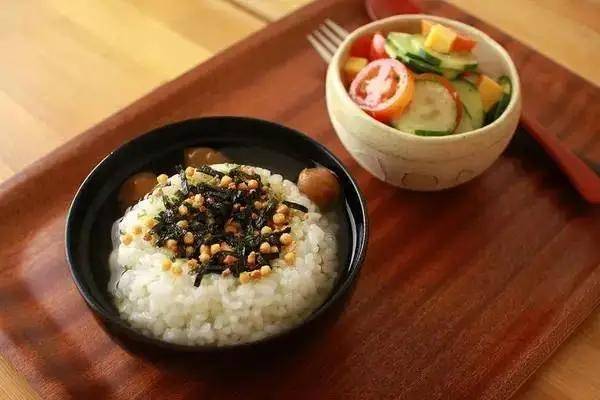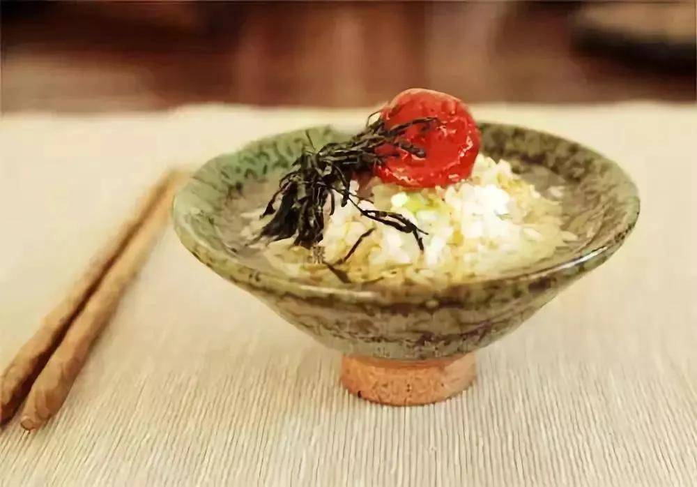 事实上,茶泡饭起于清贫,这种近乎于“素食”的生活方式,不需要太多食材,也不需要太多油水,精心调料,饭粒干且硬,热汤水泡过,温淡清爽,十分适宜夏天食用。