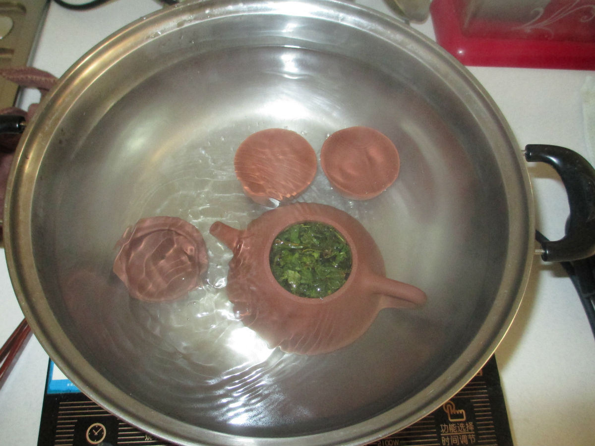 泥料在千度以上高温中炼烧时,其特殊属性与显微结构虽未被破坏,然其间却已无甚水分,产生了一种“燥气”,并不可避免的有泥料的土味,需要进行退火。有经验的朋友都知道,新出窑的壶立即用来泡茶,不管你塞多少茶叶,冲出来的茶汤都很“淡”且含“土味”。因此,必须让壶先吃足“水分”,消除“火气”和“土气”,为以后的养壶打下良好的基础。