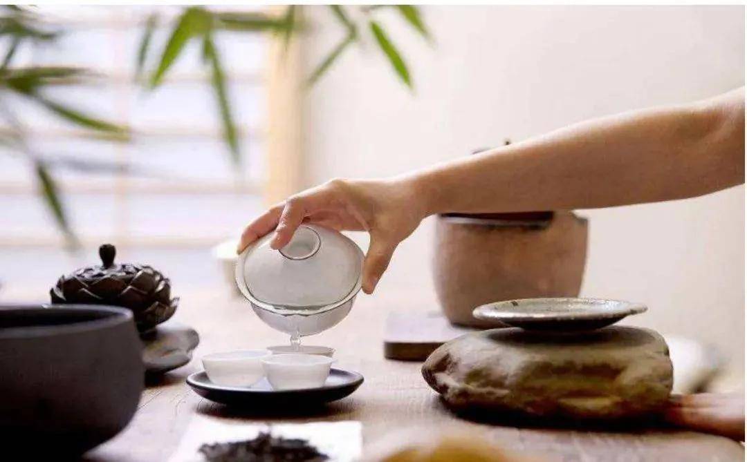 把茶置入壶中,缓缓注入水,茶叶慢慢浸润,翻滚,上下浮动,舒展开来,原先的颜色也变得鲜活,缕缕清香飘起。