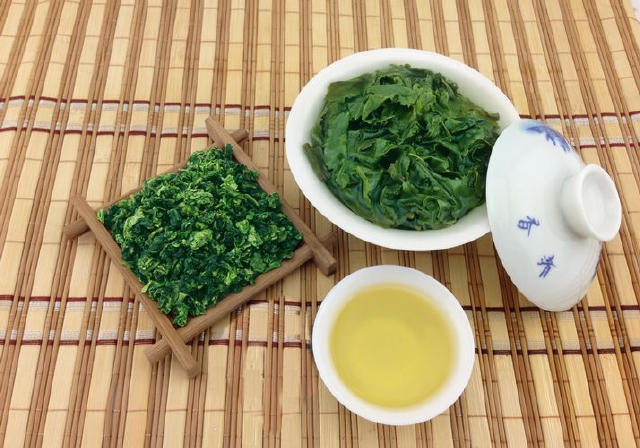 传统正宗的铁观音外形色泽砂绿油润,汤色金黄或金黄泛绿,金黄色是主色调,摊开叶底可看到一些因发酵而红变的边缘(即绿叶红镶边)。但是,有些人将“清汤绿水”这个绿茶的特征视为铁观音的特征。