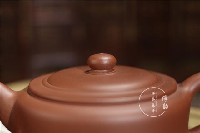 此壶为周盘造型却又略有不同,壶身短柱形,压盖微鼓,扁圆形壶钮与壶身嵌合一致