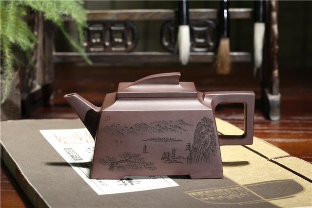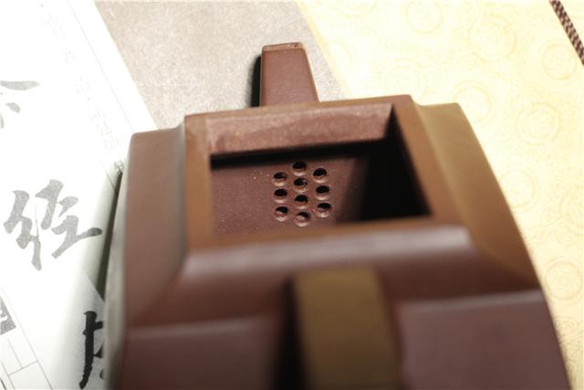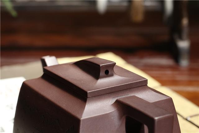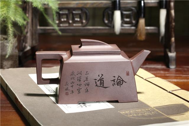 此壶由原矿老紫泥精致而成,内敛低调的色泽配上方正的壶型