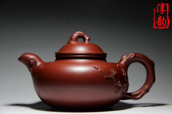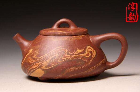 紫、绿、红三种基泥,按不同配比和粗细颗粒拌制经不同温度、气氛烧成,泡养后则“紫而不姹,红而不嫣,黄而不娇,黑而不墨,如铁如石,胡玉胡金,备五文于一器,具百美于三停,远而望之,黝若钟鼎陈明庭,迫而察之,灿若琬琰浮精英”(吴梅鼎《阳羡茗壶赋》句)。