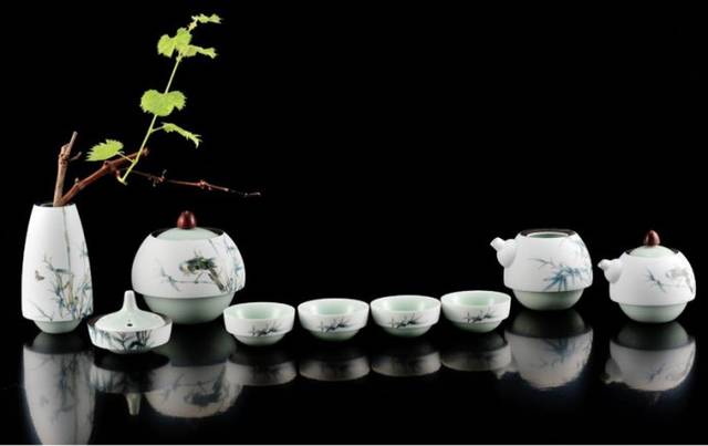 陆羽的《茶经》从选茶,制茶,茶具,喝茶等各个方面论述了茶文化,其中但就瓷器方便陆羽认为青色是茶器最理想的色泽,因为青色能衬托茶汤碧绿,而白色却会使茶水呈现淡红,令人感觉味道欠佳。这种论调全因他当时使用的是茶饼。其后的宋代茶人开始使用茶粉,因此他们更偏爱蓝黑及黑褐色的厚重茶碗。明代茶人泡饮淹茶,故喜用白瓷。
