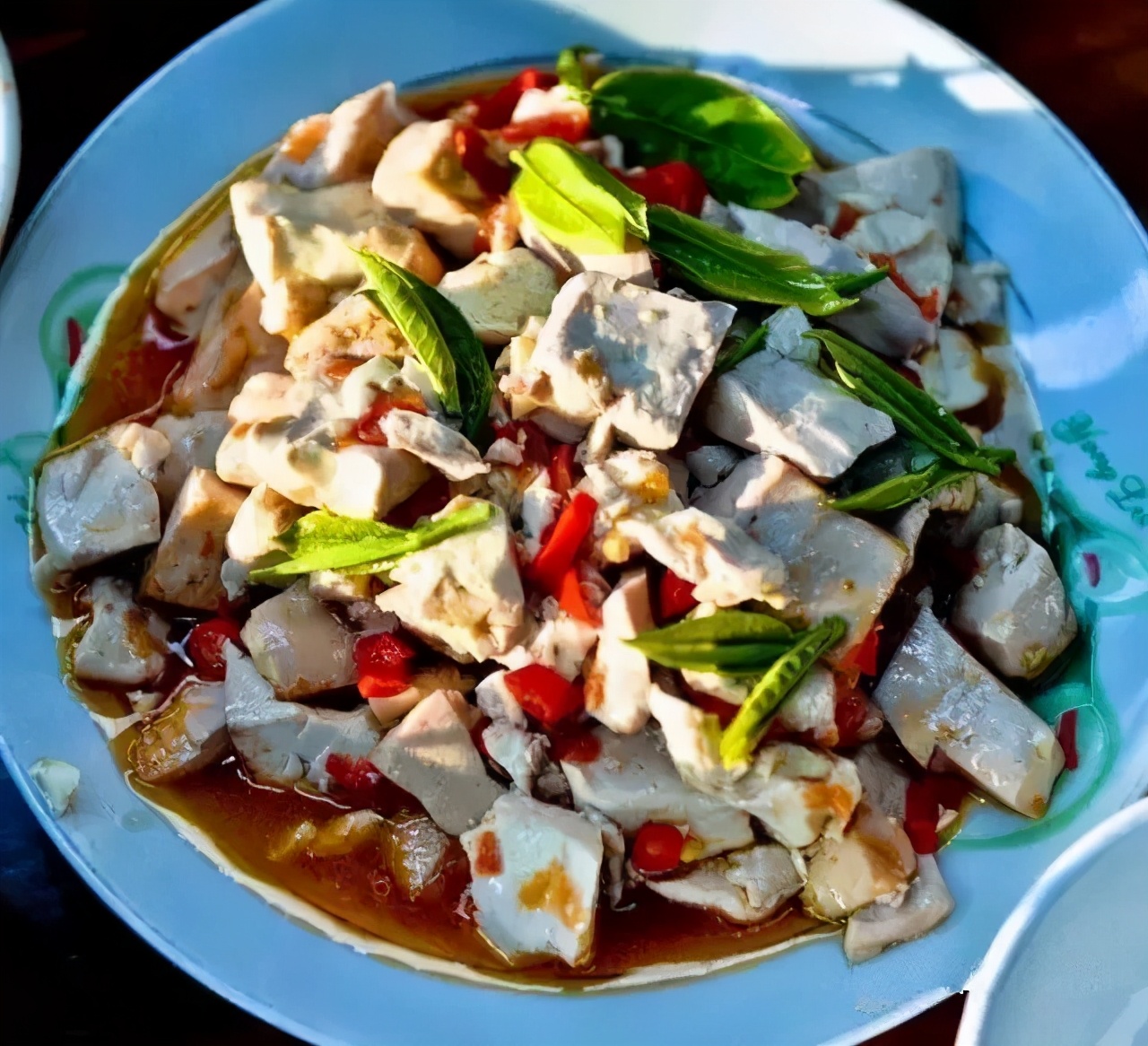 普洱茶炒包浆豆腐云南风味特色明显,是将云南两种特色食材——包浆豆腐和普洱茶结合。