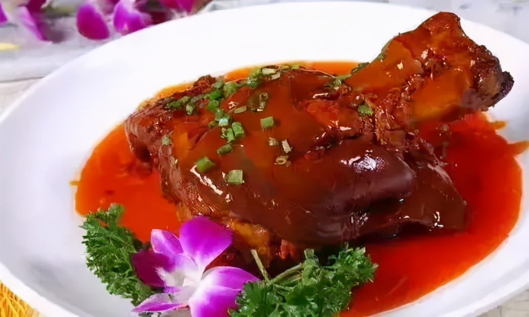 油腻的肘子和去油的普洱茶奇妙结合在一起,便成了既解油腻又添茶香的美味佳肴。