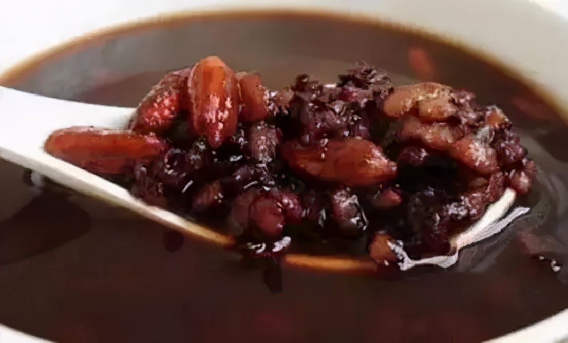 用普洱茶和甘菊花泡茶,用其茶汤来煮粥。普洱茶的色泽决定了粥呈红中带黑的颜色。