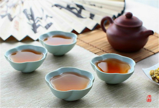 2.除去异味。将开水注入壶中,从壶嘴中快速倒出,即将壶浸泡于冷水中,如此反复三、四次,即可除去异味,恢复壶的元气。