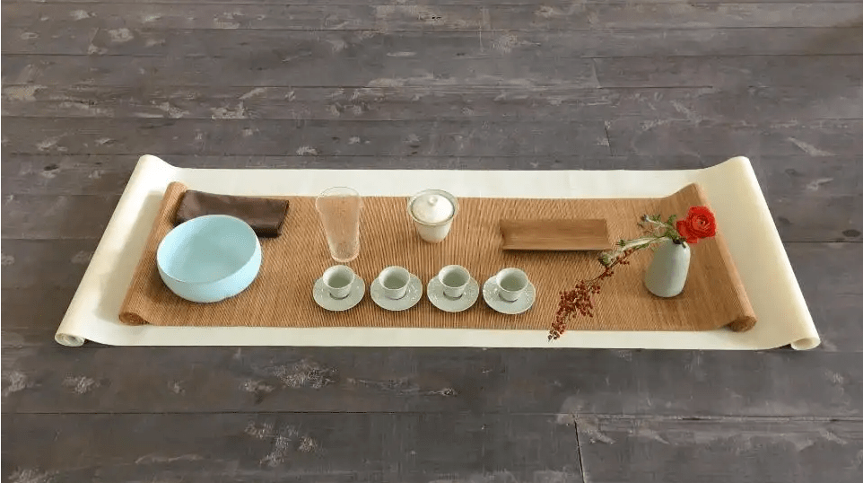 遍查中国古代茶文化史料,无“茶席”一词。茶席的含义应从“席”字引申而来。“席,指用芦苇、竹篾、蒲草等编成的坐卧垫具。”(《中国汉字大辞典》)《诗·邶风、柏舟》有:“我心匪席,不可卷也。”《韩非子·存韩》有:“韩事秦三十余年,出则为杆蔽,人则为席焉。”都将席的质地、形状、作用说得十分清楚。