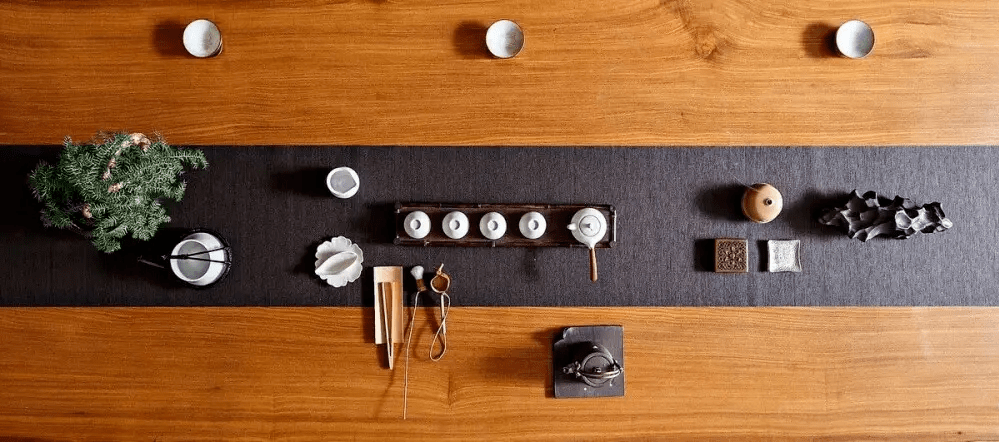 显然,童启庆教授所指出的茶席“是泡茶,喝茶的地方,包括……客人的坐席”(重点号为本书作者所加)和周文棠先生所指的“茶席(案)设计”一样,是指“茶室”的环境。但周文棠先生在相关内容中,已把“沏茶台”、“茶几”、“细草席(或榻榻米)、地毯”、“茶案台布”、“花卉盆景(插花)、焚香、挂画、配乐”、“屏风、门帘、布幔”等归入“茶席”之中。从这里可以清楚地看到,无论在台湾还是在大陆,茶席的设计和茶室的布置,在实际内容的划分上仍比较模糊,但“茶席”一词所指,实际意义仍是“茶室”。