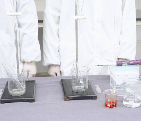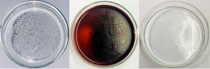 从左至右:纯水;益原素茶汤;洗涤剂溶液