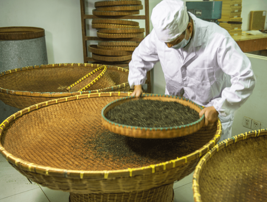 使用不同筛号的竹筛,运用抖筛、撩筛、飘筛等手法,将茶叶按粗细、大小、轻重分开。