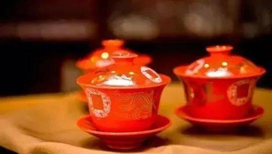 “三茶”是伴随“六礼”的三次敬茶礼,简单、喜庆而慎重的仪式之中体现着人与人之间亲疏远近、身份秩序的相互认可与融和。“一茶”为“订婚时敬甜茶”,即当男家客人入座后,待嫁女儿奉上甜茶,这种甜茶一般是茶叶加上冰糖或金橘等冲泡而成,按辈份、年龄等次序敬茶,客人回赠红包表示答谢,俗称“压茶杯”。“