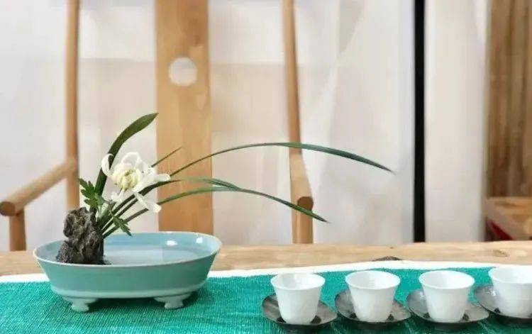 到宋,文人雅士喜欢在山水间吟诗、作画、品茶,也喜欢用自然艺术品来装饰茶桌。因此,插花、焚香、挂画与茶艺一起被合称“四艺”。如今,插花、焚香、挂画也常被我们运用在茶席之中。