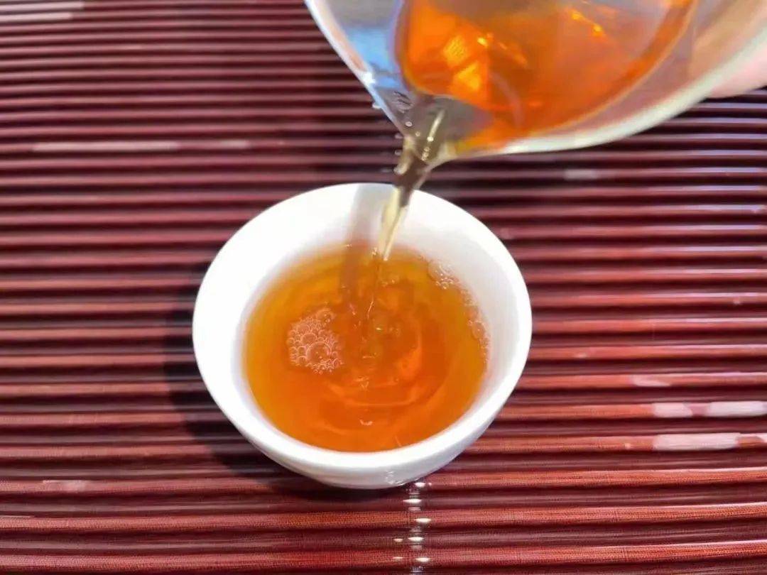 色:岩茶汤水一般呈金黄或橙黄,带些微红,清澈亮丽。重发酵,中足火功的岩茶,颜色较深较红;轻发酵,低火功的岩茶,颜色较浅较黄。陈茶的颜色较深。