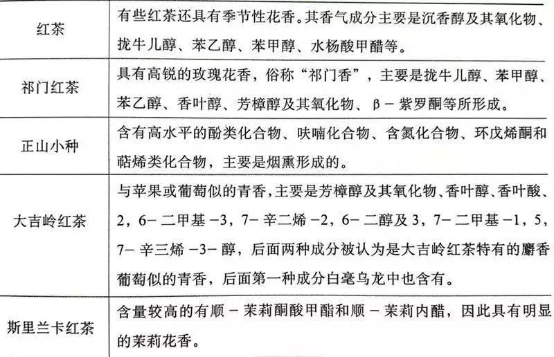 红茶因源材料和工艺不同,组成香气的成分不同: