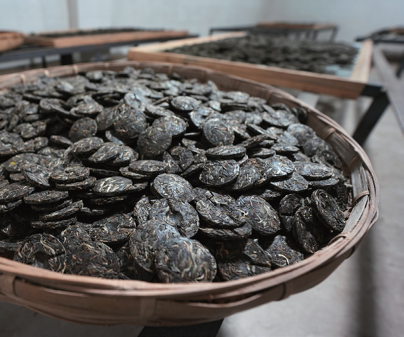 而普洱熟茶则完全不同了。首先普洱熟茶的干燥是不可以进行高温烘干的。其干燥采取的是将硕大的茶堆摊薄,开出纵横交错的“沟”,加强通风,让空气带走水分。每隔2~3天开沟一次,让含水量降低至12%下。