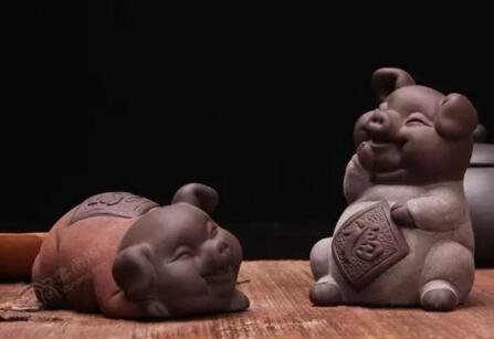 猪:猪历来是富足、祥瑞的象征。所以把它养在茶盘上非常可爱,也很招人喜欢。一般养单个的,可以买比较大的,但也有一对的,分为阴刻和阳刻,即有的出头出脚出尾巴,有的则全在砂石的刀功上反映喜怒哀乐。